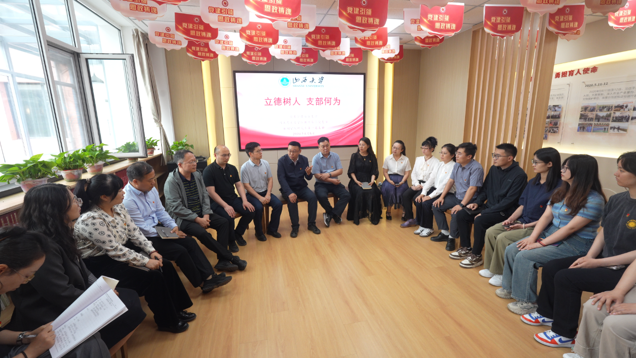 为充分发挥高校基层党支部战斗堡垒作用,为落实立德树人根本任务贡献支部力量,6月5日下午,山西大学党委宣传部党支部、马克思主义学院教师第四党支部和新闻学院研究生第一党支部在马克思主义学院党建书房开展“立德树人、支部何为”联学联建主题党日。活动由党委宣传部党支部书记张捷主持。