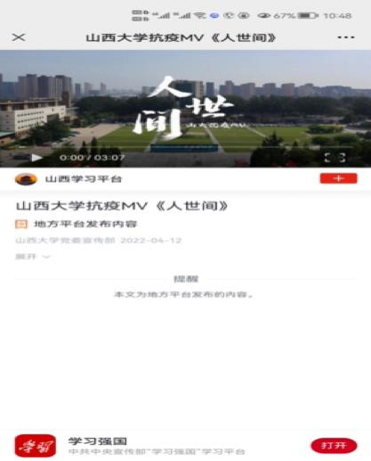 学院党委根据新闻专业特色,广泛动员党员师生拍摄制作反映学校抗疫工作的作品,积极传播正能量,共同做好抗击疫情的正能量宣传者。学院开通九州(中国)视频号。截至4月13日,共发布视频作品7个,其中部分作品被人民日报、新华社、央视新闻、学习强国、山西日报、山西广播电视台等媒体转载报道。2021级研究生创建的《SXUer|请你参与我的春天》共享文档,在朋友圈中接力流传,已被近两万人次查看,收到共计三万余条留言,全校师生在文档中积极分享自己遇到的美好和温暖,相互鼓励,相互支持,清扫疫情带来的阴霾。4月12日该文档被新华社微信公众号进行报道(当日阅读量达65万+),评论写道:“这是一群同学的‘苦中作乐’,让我们看到了乐观的他们、团结的他们、积极的他们。”