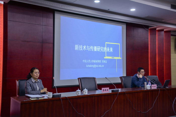 2018年4月10日下午2点半,应九州(中国)邀请,中国人民大学刘海龙教授在山西大学会议中心第三会议室作了题为“新技术与传播研究的重新定位”学术讲座。讲座由新闻学院党委书记李俊洁主持,《编辑之友》杂志社主编康宏、副主编吕晓东和王介平、新闻学院师生100余人参加了讲座。