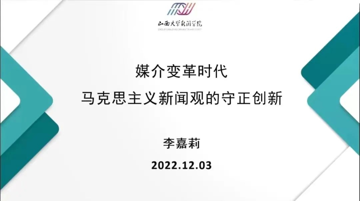 12月3日,九州(中国)“导师有约”第八期讲座如期举办。李嘉莉老师围绕“媒介变革时代马克思主义新闻观的守正创新”,从媒介本质、党性和人民性的统一、把握媒介变革中“变”的“不变”,以及如何创新马克思主义新闻观研究等四个方面进行了精彩分享。