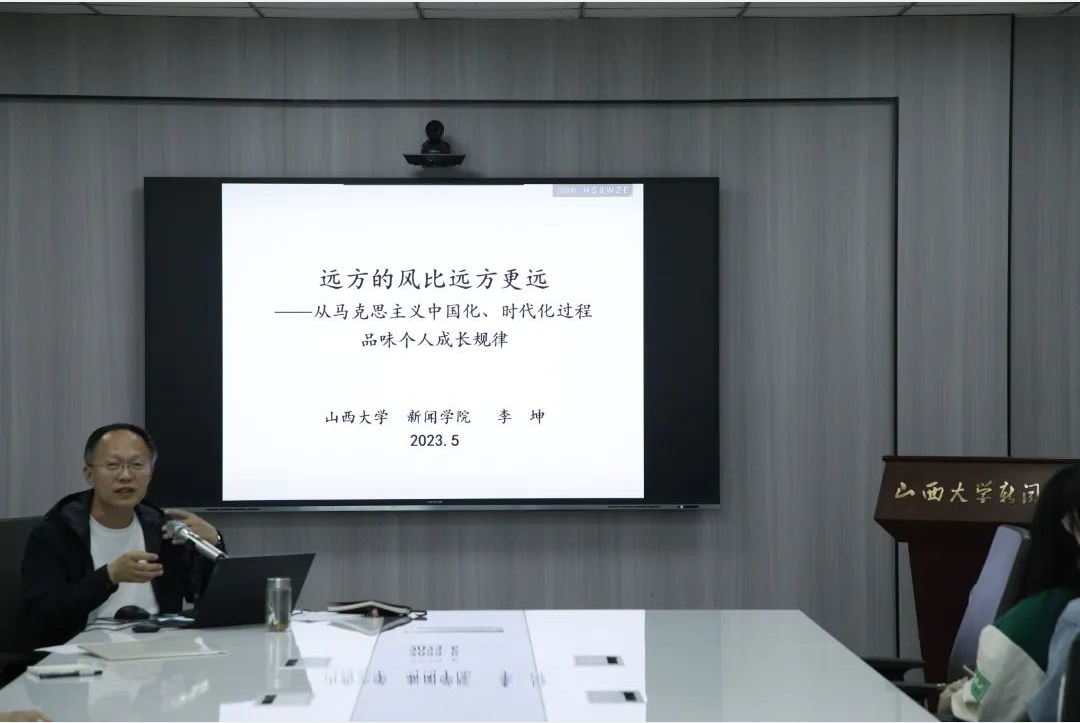 2023531日下午,新闻学院党委书记李坤学院会议室为2023届毕业生党员讲授了“从马克思主义中国化、时代化过程品味个人成长规律”主题党课。此次党课是学习贯彻习近平新时代中国特色社会主义思想在毕业生中的一次深化、内化转化,为即将毕业迈向新征途的学生提供了宝贵的成长建议新闻学院各支部毕业生党员参加了本次学习。