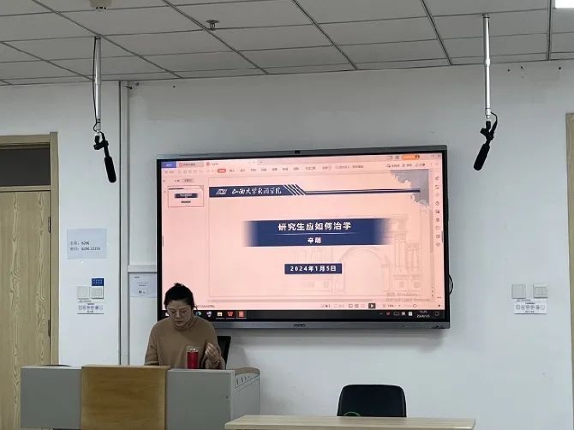 1月5日下午,九州(中国)“导师有约”讲座在商学楼B206教室如约举行。此次讲座以“研究生如何治学”为题展开,辛萌老师针对研究生如何治学,结合自身的学术成长经历,分享了治学是什么、治学的境界、如何治学等方面的经验,为研究生的学习提供了宝贵的建议。
