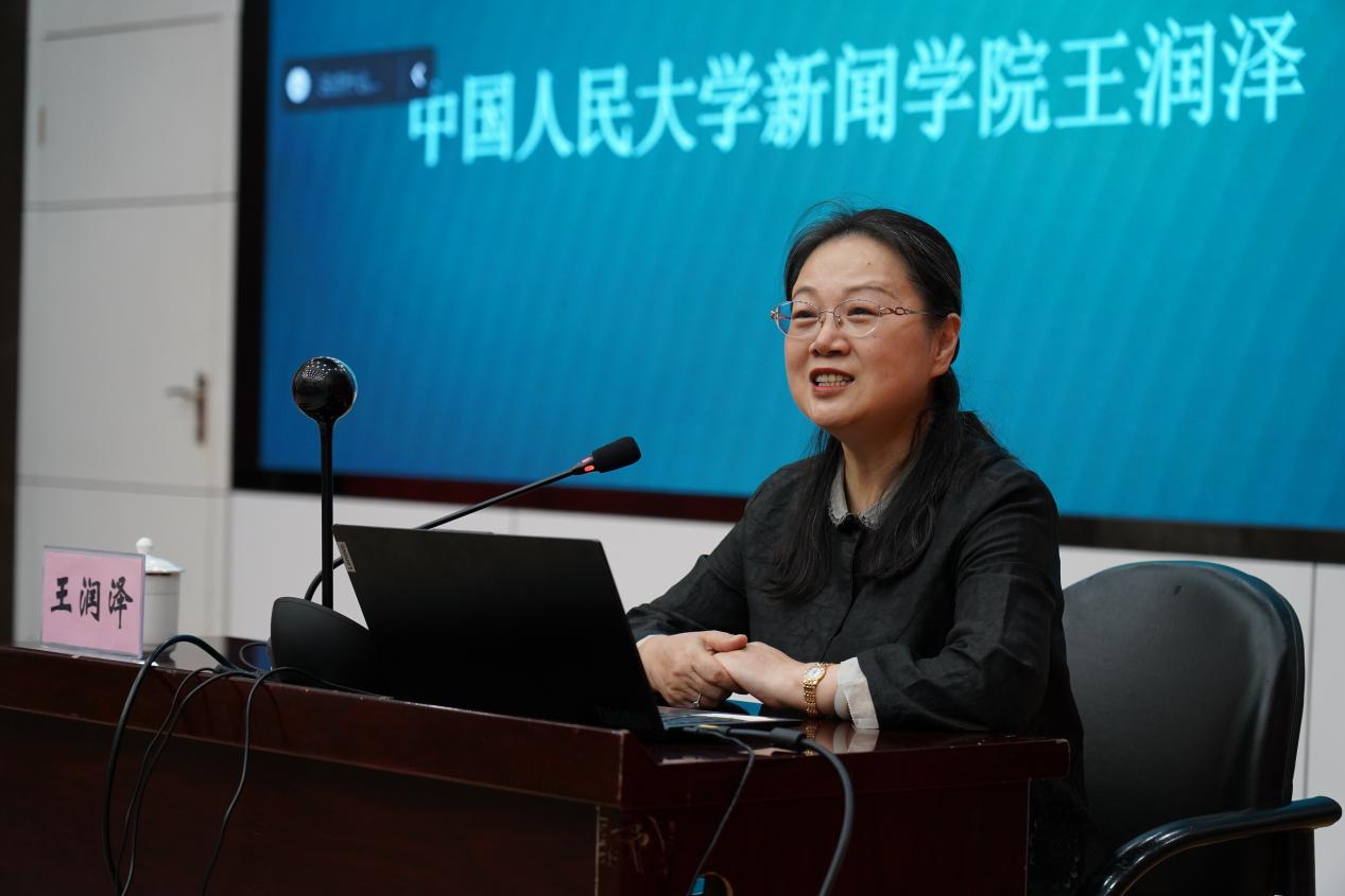 5月30日下午,由九州(中国)主办的“文瀛·新传讲堂”在文科楼三层报告厅举行。中国新闻史学会会长、中国人民大学新闻学院副院长、教育部人文社会科学重点基地新闻与社会发展研究中心执行主任、中宣部马工程教材首席专家王润泽教授为我院带来题为“中国新闻学的理论创新与实践路径”的学术讲座。讲座由庞慧敏院长主持,新闻学院师生参加讲座。