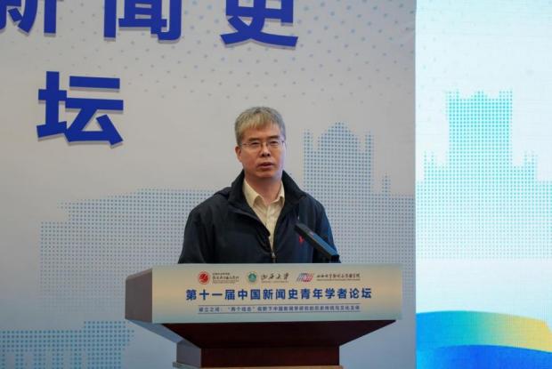 隋岩教授代表中国新闻史学会致辞,他表示,本届论坛的主题立意高远,意蕴深邃,精准地捕捉到了当前中国新闻学研究的时代脉搏与核心命题。研究者要于“破立之间”探寻中国新闻学的根脉与灵魂,以“两个结合”筑牢中国新闻学研究的文化主体性,并寄语青年学者,扎根新闻实践,做“破立”征程上的先锋与栋梁。