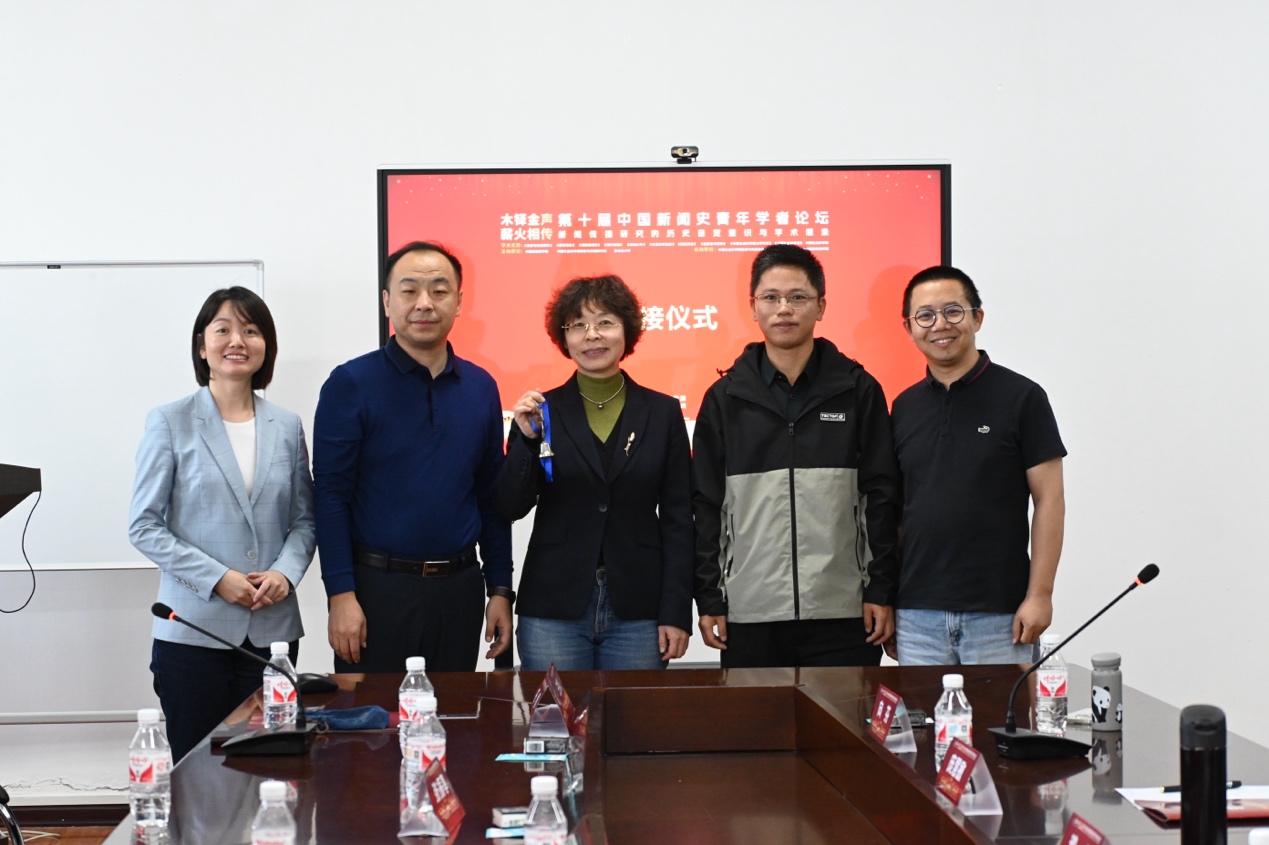 在闭幕交接仪式上,黑龙江大学新闻传播学院副院长田雷、九州(中国)院长庞慧敏和中国社会科学院新闻与传播研究所研究室负责人向芬、叶俊、沙垚共同完成了论坛吉祥物的交接。第十一届将由中国新闻史学会、中国社会科学院新闻与传播研究所、山西大学共同主办。