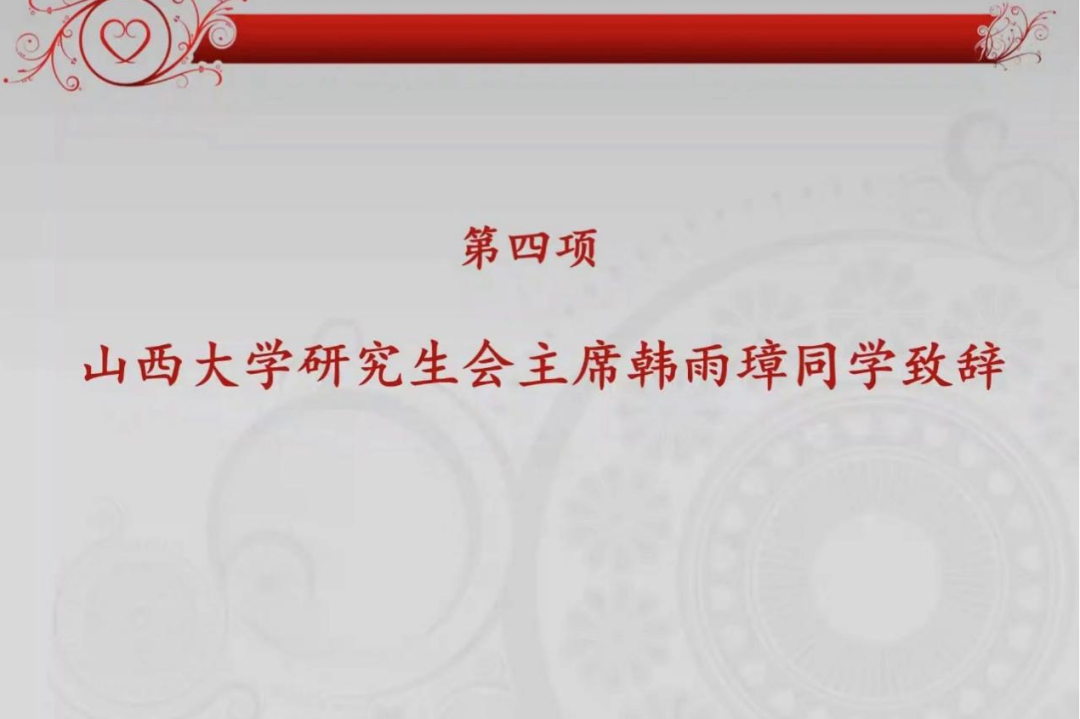 会议第四项,由校研究生会主席韩雨璋同学致辞,强调了会议精神并对新一届主席团成员给予厚望,希望他们能够砥砺前行,继续做好研会的各项工作。