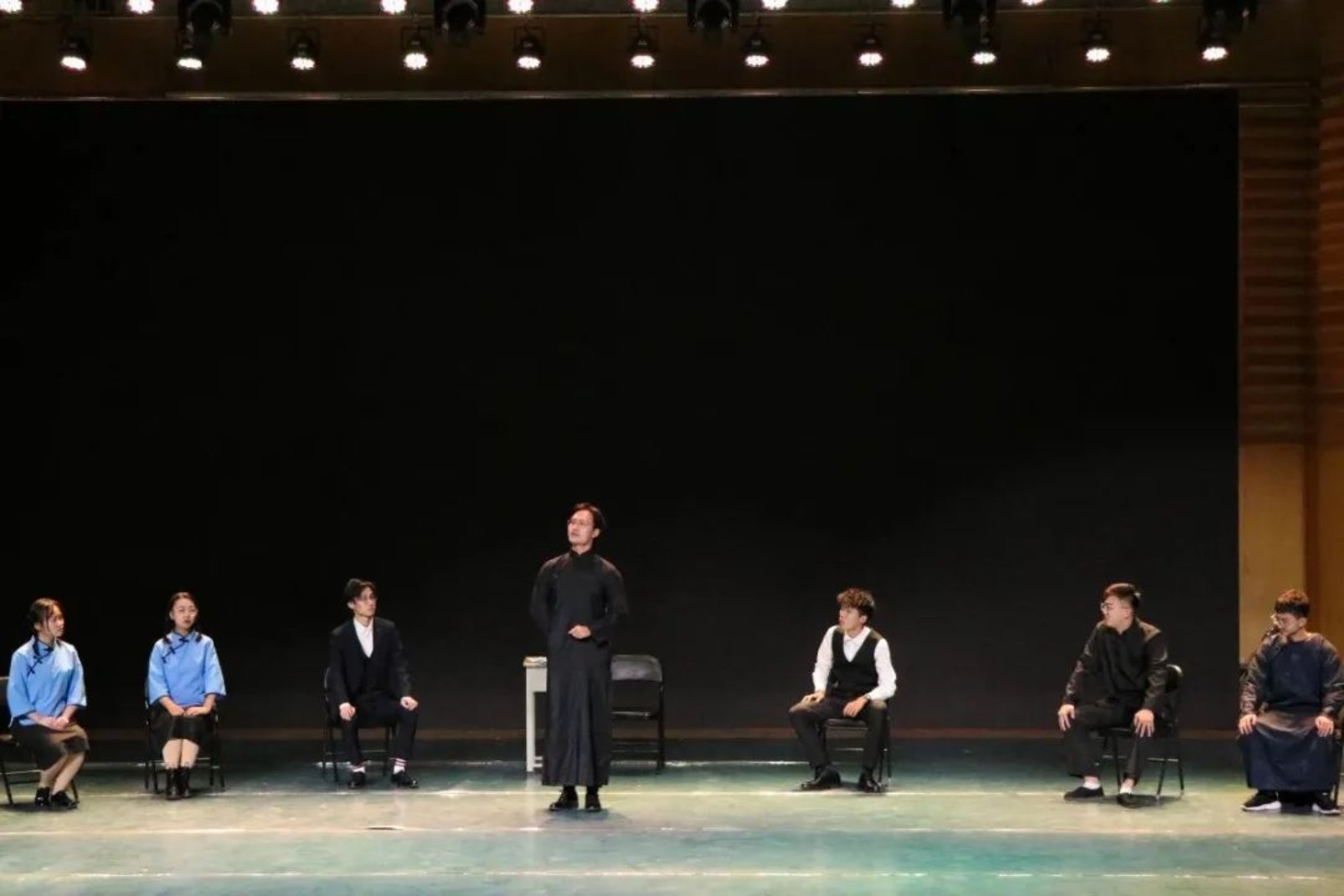 自九月份起,我院学生自行组成剧本创作小组,以山西历史革命人物高君宇先生为原型进行剧本创作。在此期间小组内成员广泛搜集资料,深入人物内心,在尊重历史的前提下对剧本反复讨论修改,形成了原创舞台剧剧本《高君宇》。十月初,我院学生会对参演人员进行确定,相关同学立即投入到了紧张有序的剧本排练工作中。所谓“众人先进才能移山填海”。所有演员并无主次之分,坚持每日到场进行两小时的排练。经过初赛与复赛的磨合和调整,从台词到动作,每一个小小的细节无不体现着每一位演员的努力与日夜兼程的恒心。