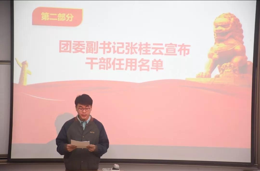 大会第二项,团委副书记张桂云对上一届学生会的工作表示认可并欢迎了2018级学生会新成员的加入,并宣读了学生会主席团及各部门干部干事的任用名单。