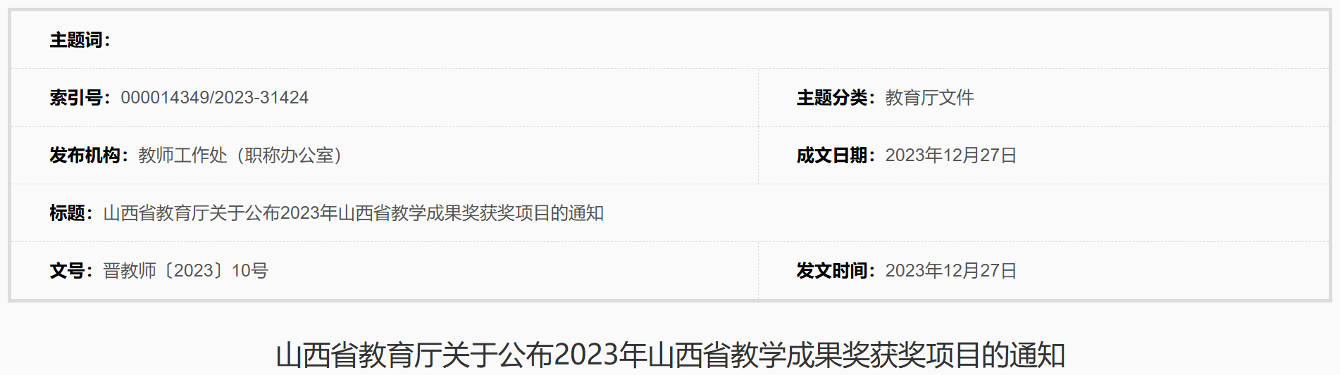 学院喜获2023年山西省高等教育省级教学成果奖特等奖