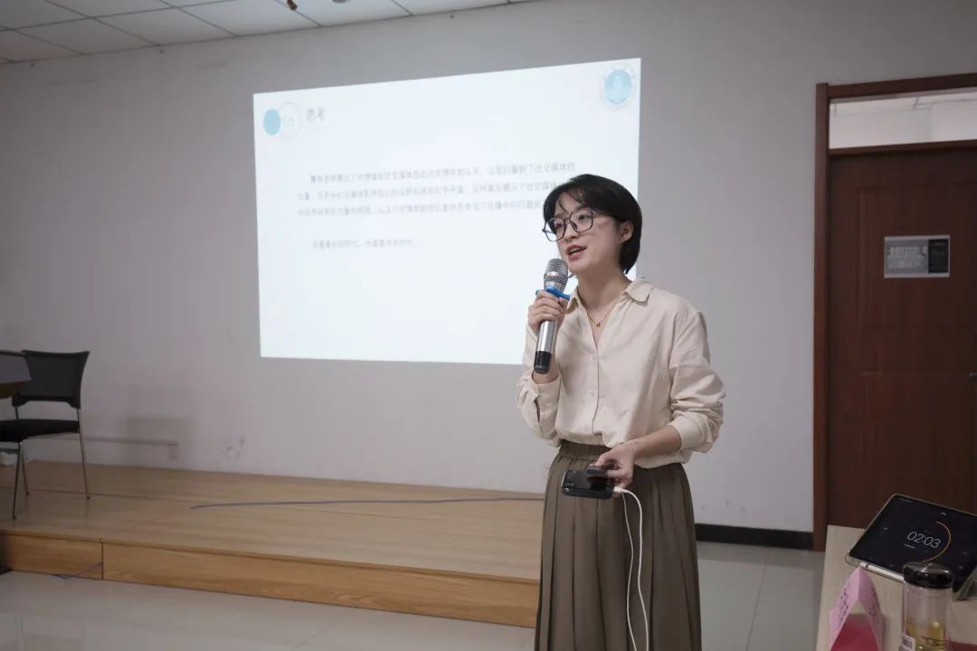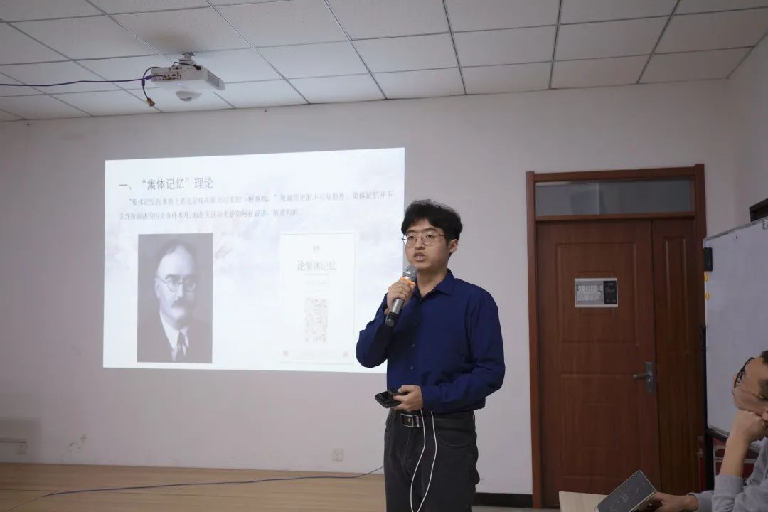 文烁棋同学演讲的主题是《长津湖之热——一种集体记忆的苏醒》,结合《长津湖》这一电影的火爆,从电影本身、官媒宣传、国庆假日、自媒体的解读等四个角度细致地讲述了集体记忆的构建。