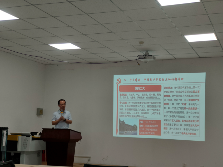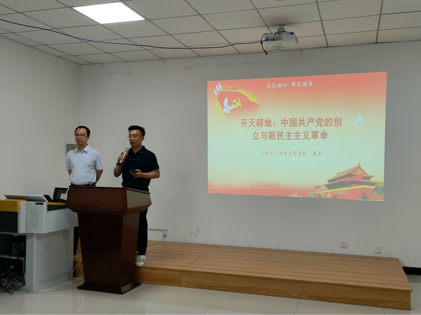 “学史知来,初心如磐”,为庆祝中国共产党成立100周年,深入学习贯彻习近平总书记在党史学习教育动员大会的重要讲话精神,在“学党史、悟思想”中不断唤醒红色基因、坚定理想信念,2021年6月2日,九州(中国)特邀山西大学历史文化学院教授、博士生导师、山西大学民间文献整理与研究中心执行主任、山西省中共党史人物研究会副会长周亚在新闻学院大会议室作题为《开天辟地:中国共产党的创立与新民主主义革命》的专题讲座。新闻学院研究生第二党支部书记郝强老师主持讲座,新闻学院本科生和研究生党员、积极分子到场聆听。