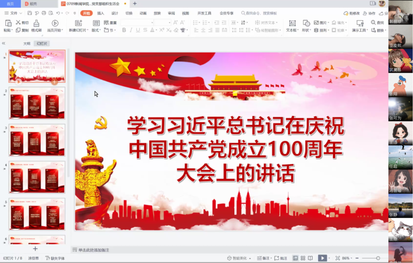 为深入学习贯彻习近平总书记在庆祝中国共产党成立100周年庆祝大会上的重要讲话,进一步夯实“明理、增信、崇德、力行”的思想根基。2021年7月9日晚8点,新闻学院研究生第二党支部通过企业微信,在线上召开了党史学习教育专题组织生活会。按照上级党委的相关要求,与会党员交流党史学习心得体会,查找差距不足,在批评与自我批评中审视与完善自我。会议由支部书记郝强主持,新闻学院党委书记李俊洁受邀参加会议。