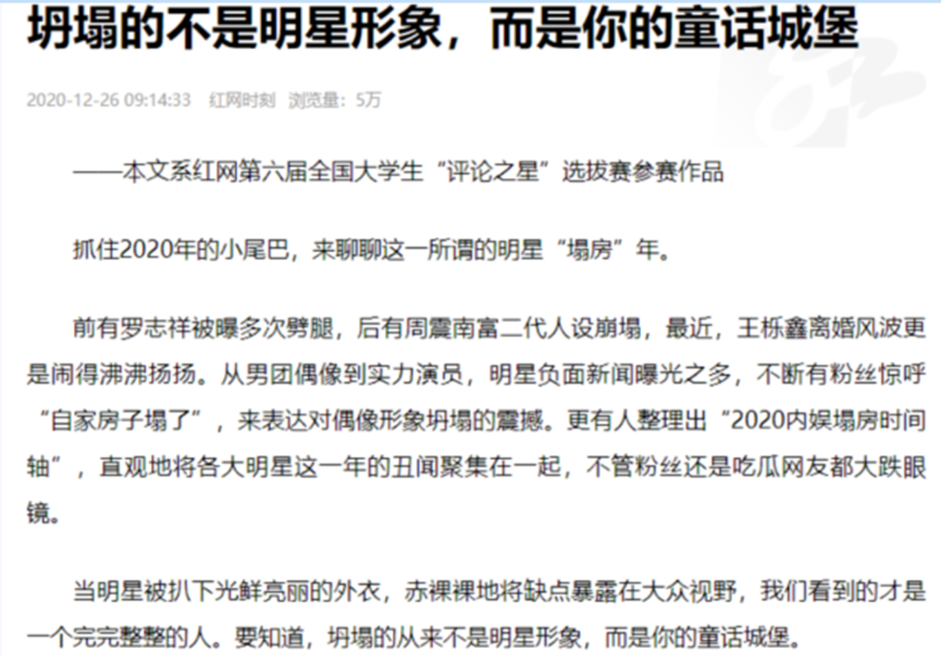(图2:钟星月第六届全国大学生“评论之星”选拔赛  入围奖作品)